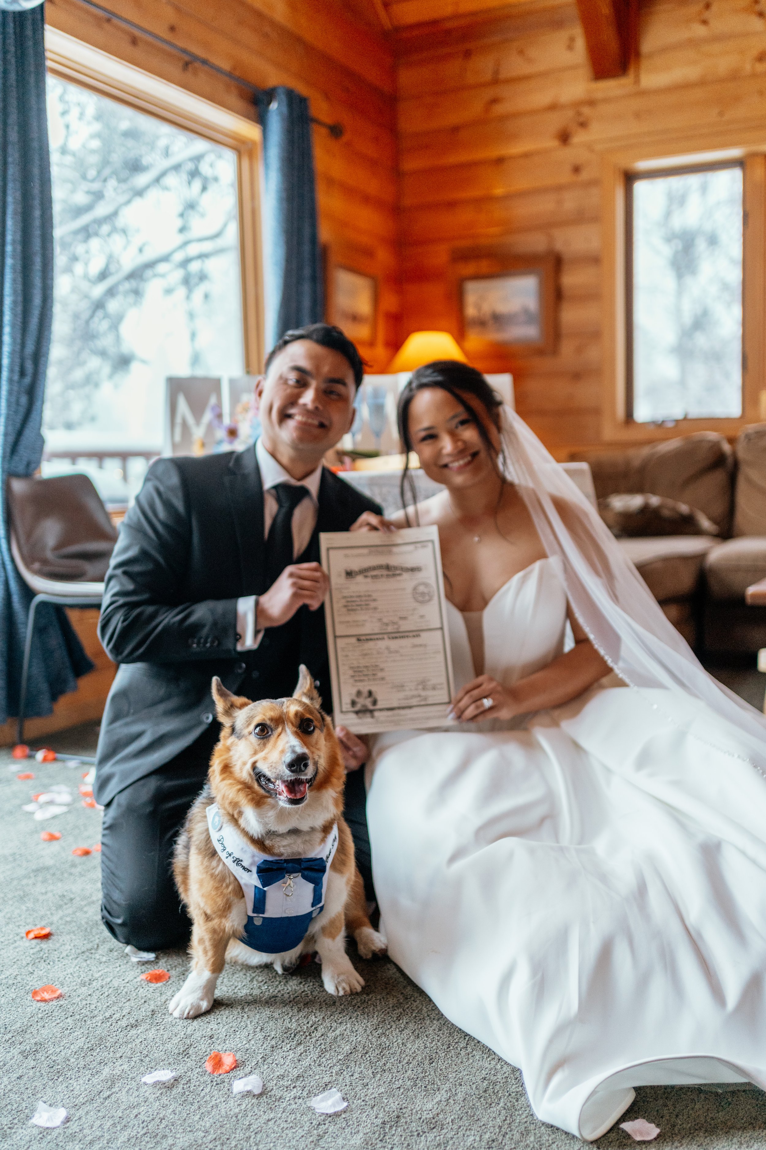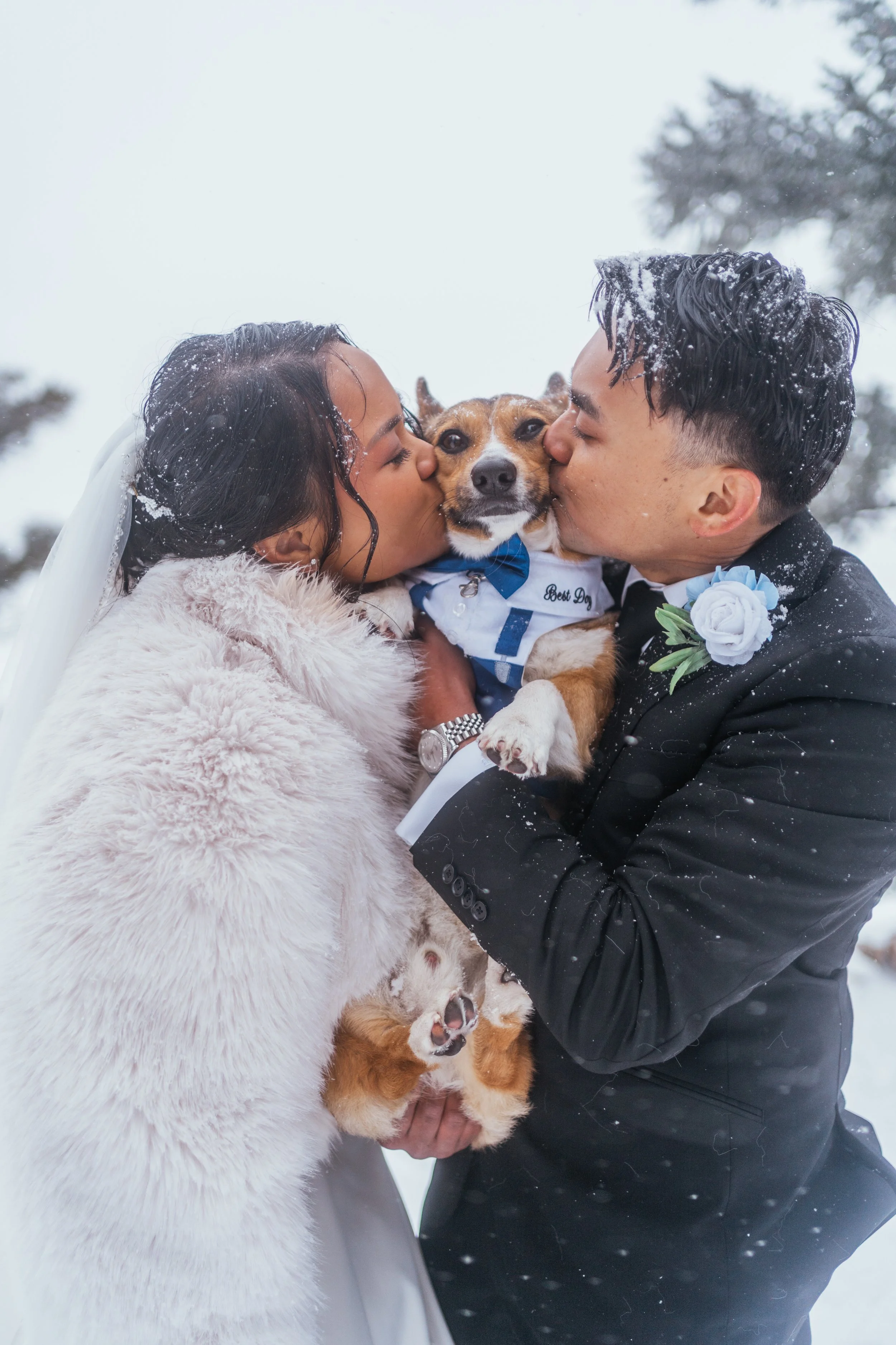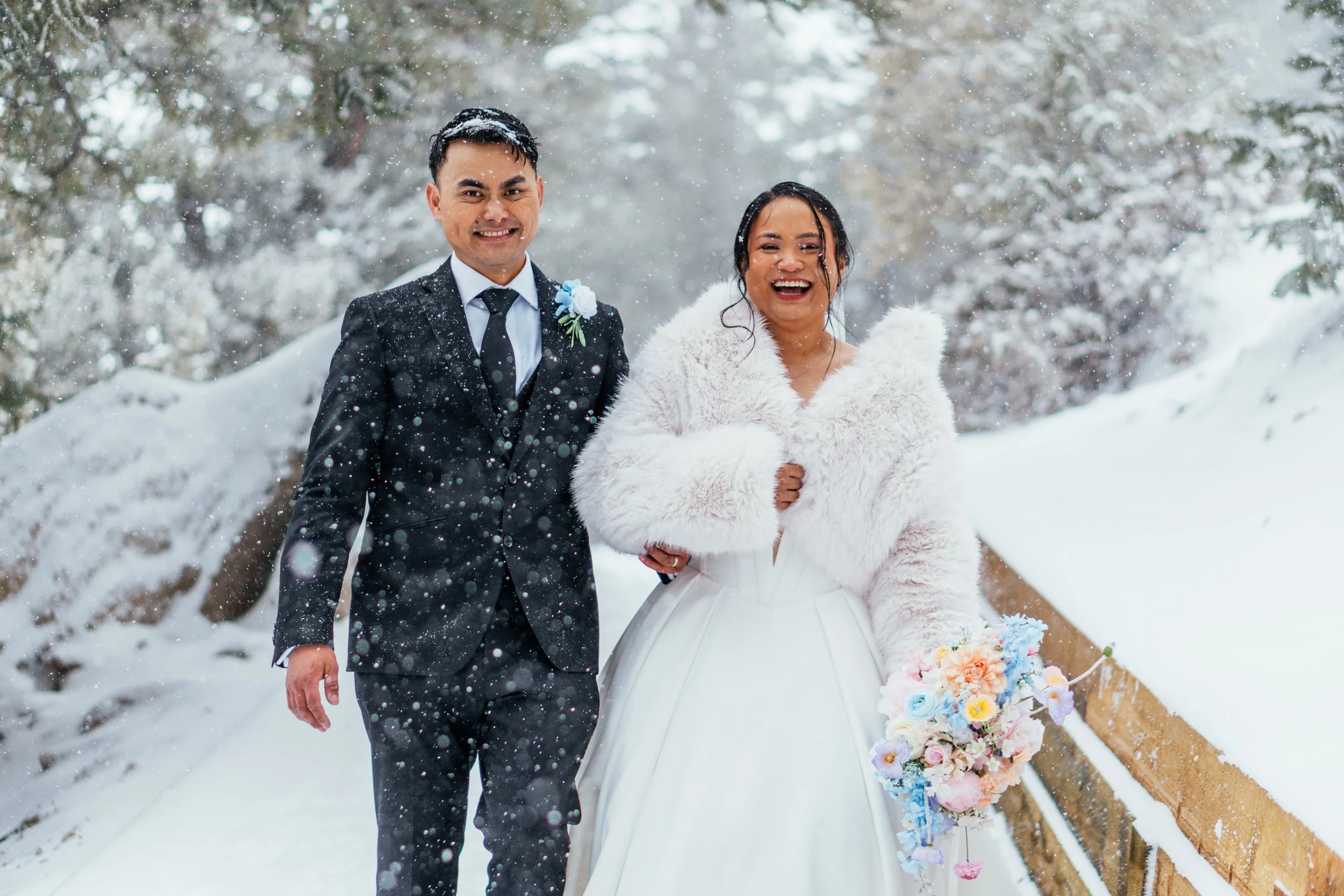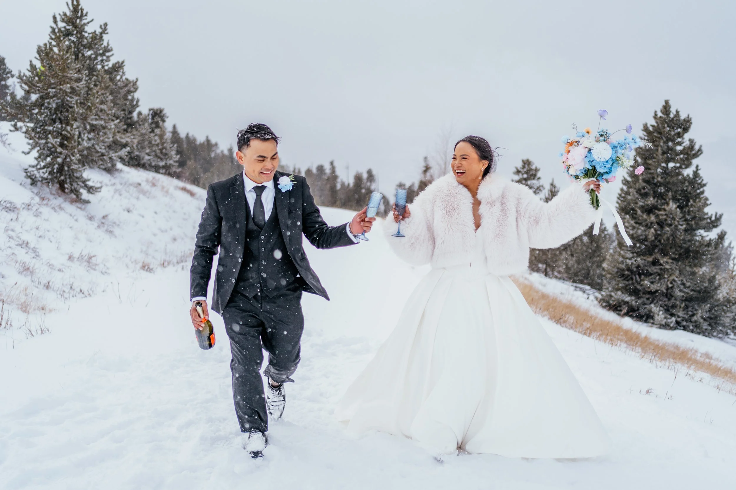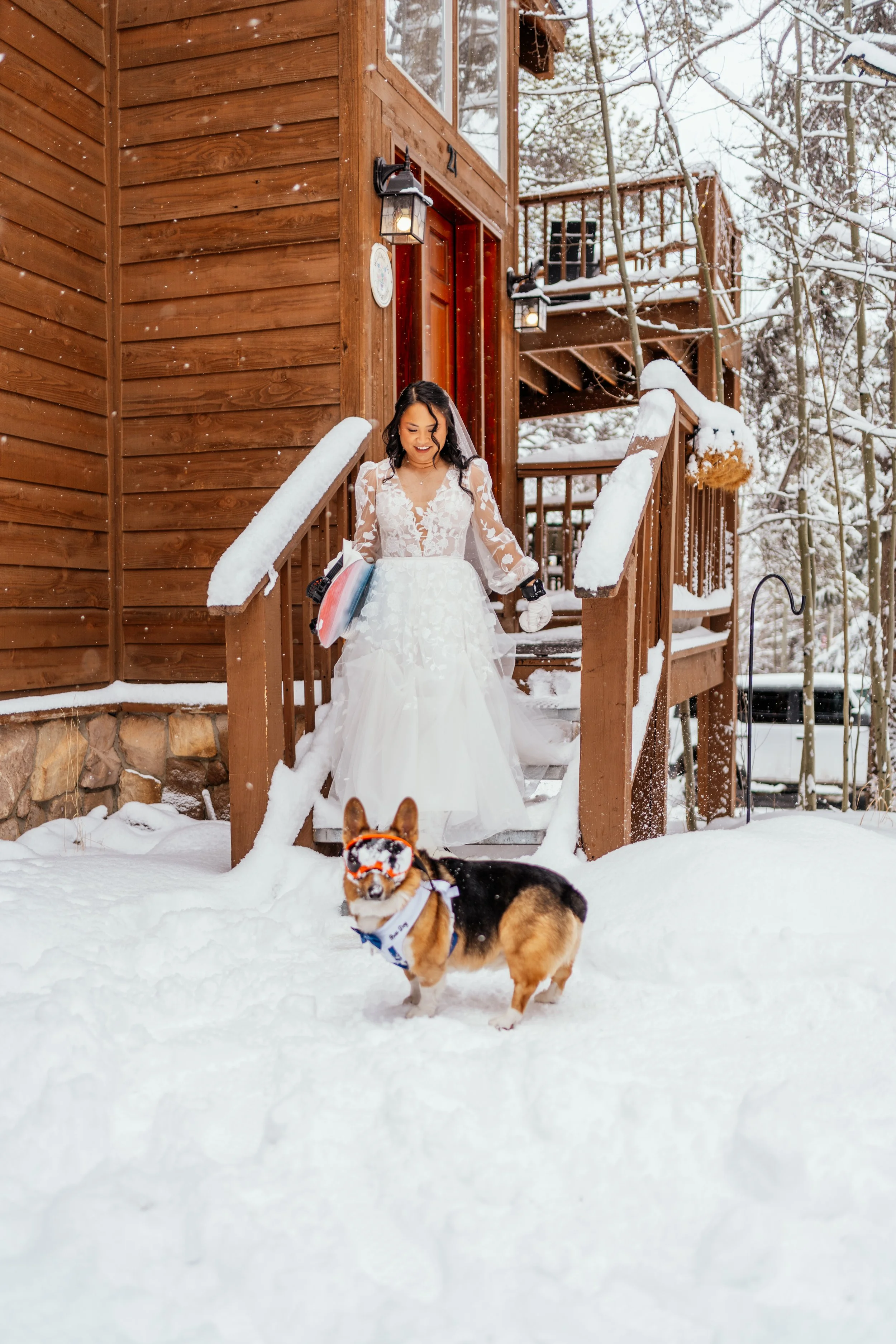 By the time the ceremony portion ended, the day had already been full enough to count as memorable. But this was only the first chapter. Next came the drive back to the Airbnb, a Filipino-inspired breakfast prepared by a private chef, and then the part that made this elopement feel especially, unmistakably theirs: snowboarding together in wedding clothes, the mountain opening up around them, and a wedding day beginning to turn into something even more alive.