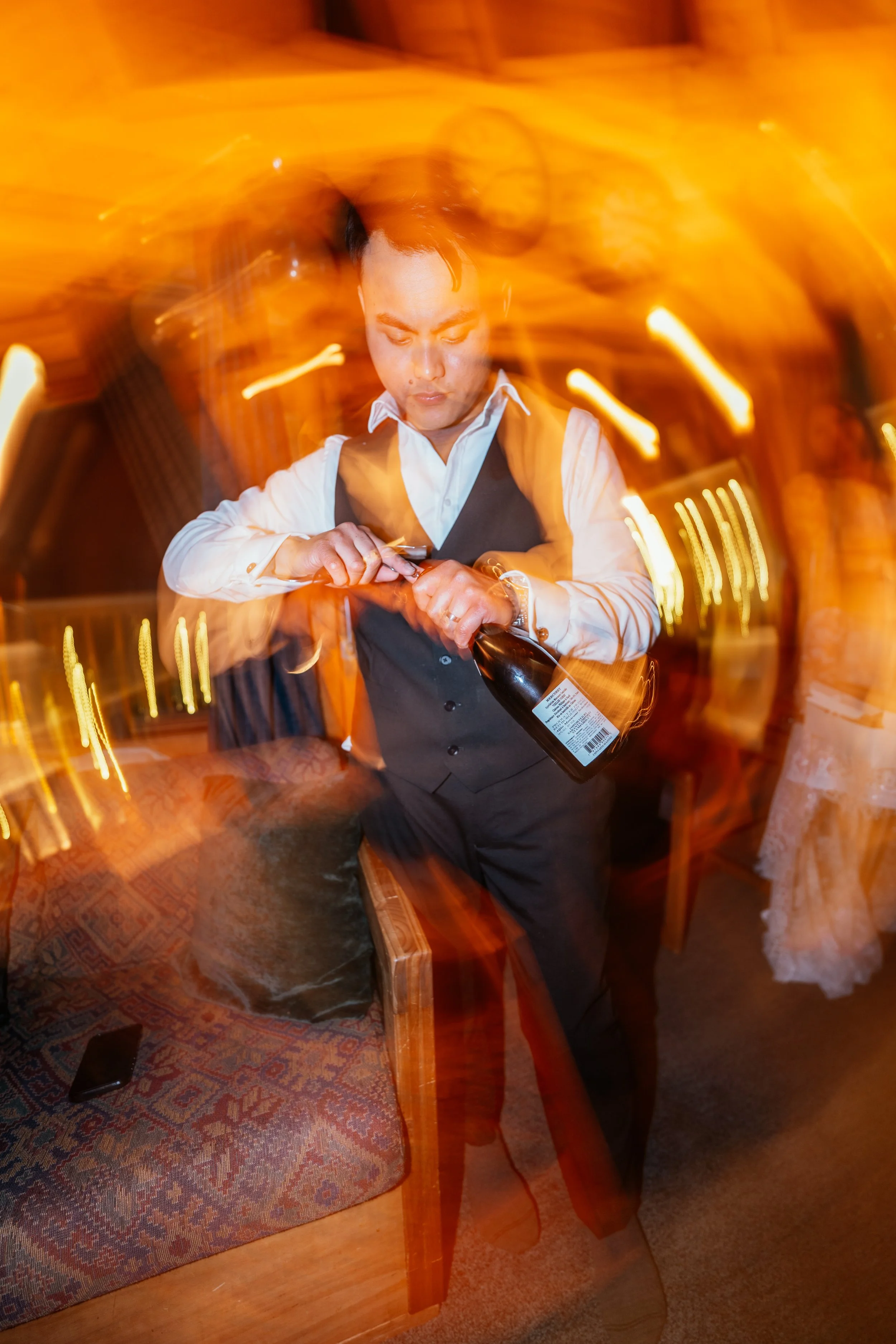Rather than staging a long sequence of rigid portraits, we encouraged them to walk around, dance, do things, hang out. This feels, to me, like the central emotional thesis not only of the day but of the article itself: the best wedding imagery often comes not from asking people to look like they are having a beautiful time, but from protecting enough space for them to actually have one. Gela and TJ wanted to pop champagne, move through the snow, dance together, breathe in the fact that they had just gotten married. That became the material. The visual story came out of the lived story. And that distinction matters.