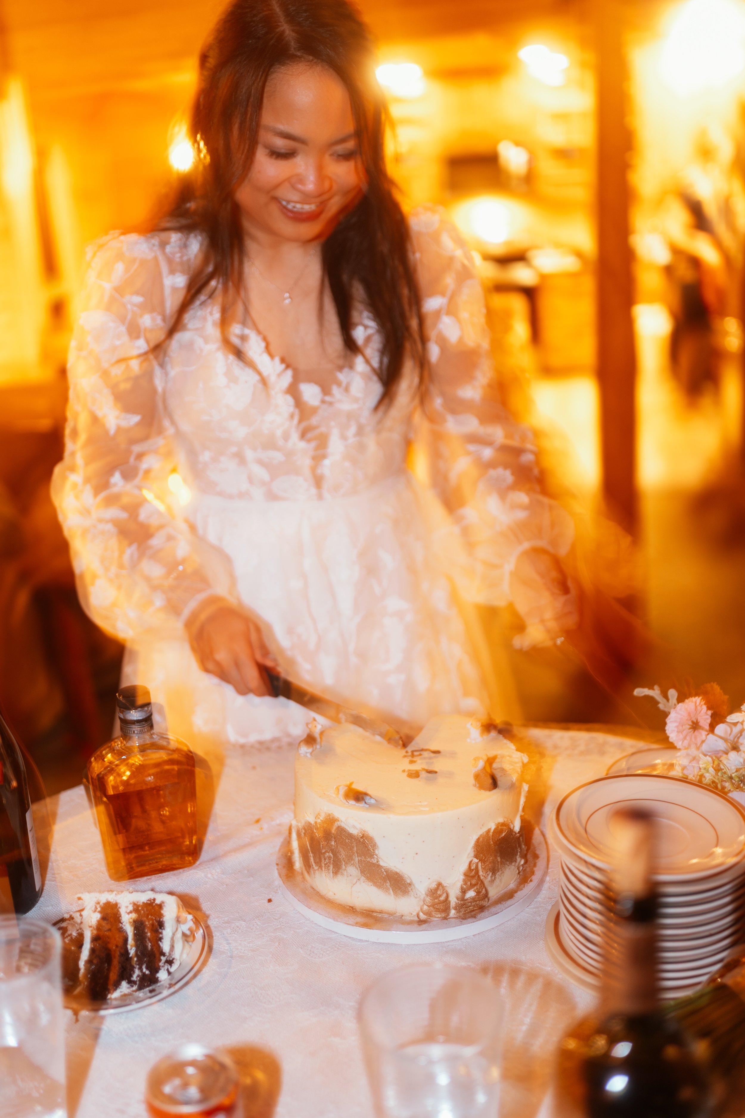Dinner also made room for some of the more traditional rituals, though by now tradition had been so thoroughly absorbed into the couple’s own style that it no longer felt inherited. It felt chosen. There was a first dance, there was cake cutting, there were toasts, and each of these moments seems to have landed not as obligatory milestones but as welcome opportunities to linger in front of the people they loved. This, perhaps, is another misconception about elopements worth letting go of: that they require the abandonment of tradition in order to be meaningful. They do not. What they require, at least at their best, is discernment. Keep what feels like you. Let go of what does not. A first dance after a snowboarding session and a private-chef dinner is still a first dance. It may even feel more vivid because it exists in a day that has already broken open the boundaries of what a wedding can be.